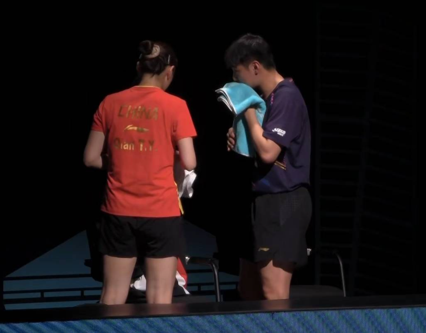 这一场前半场薛飞/钱天一是占据优势的,但随着黄友政/石洵瑶沟通不断提升衔接,再加上单板质量也在提升,这是他们可以在后两局保持领先的原因。特别是石洵瑶稳前台,黄友政稳远台,两个人的搭配非常完美。