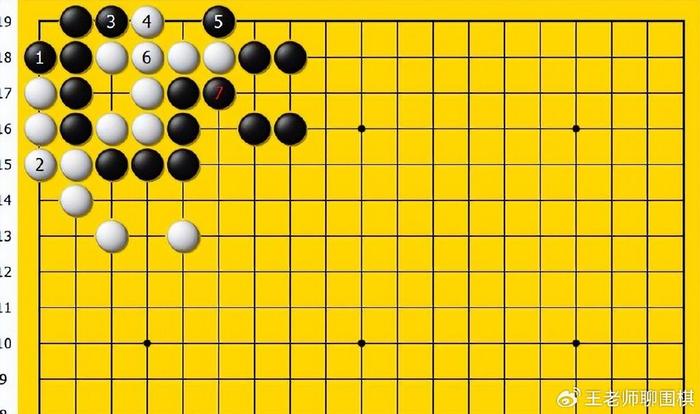 黑棋该如何行棋,才能在对杀的时候,形成黑棋的有眼杀白棋的无眼?黑棋1首先一线立是妙手,占据眼位做眼是先手,是黑棋有眼杀白棋无眼的要点!面对黑棋1的立,白棋2也只好粘,避免被黑棋提吃掉,黑棋3继续冲是好手,占据眼位,破坏白棋做眼,白棋4如果继续一线扳来挡住黑棋,同时扩大眼位,黑棋5会继续一线扳,来占据眼位破眼,白棋6如果继续粘,来补足棋形的缺陷,黑棋7会继续紧...
